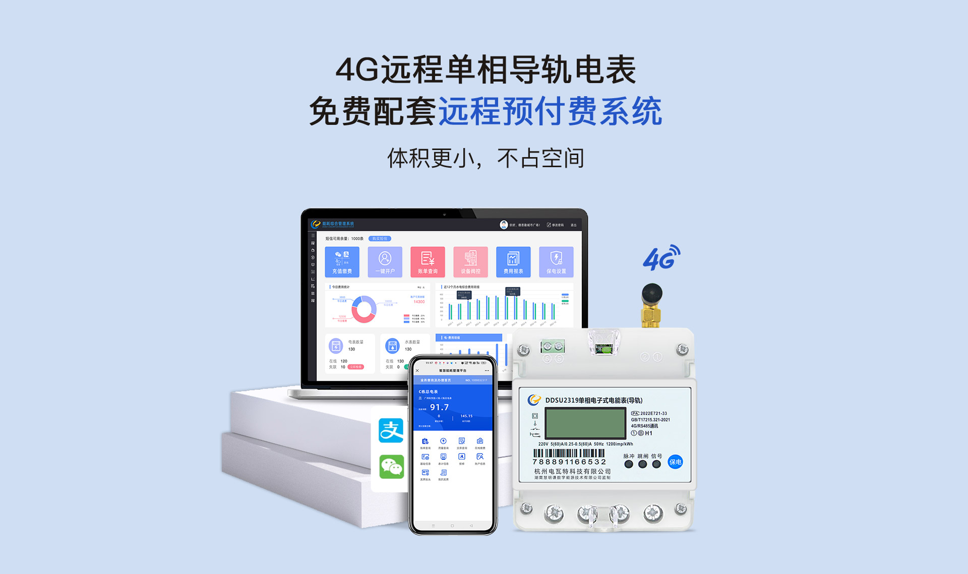 中南儀表DDSU193單相4G/RS485通訊電子式導軌表