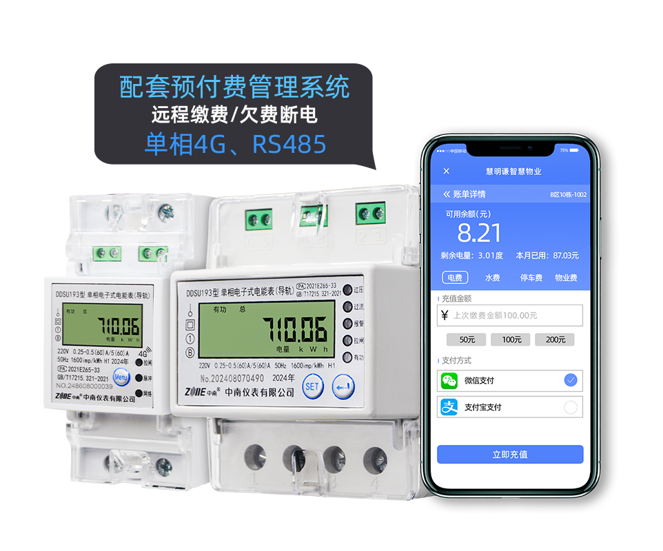中南儀表DDZY193-J型4G/RS485通訊單相智能電能表