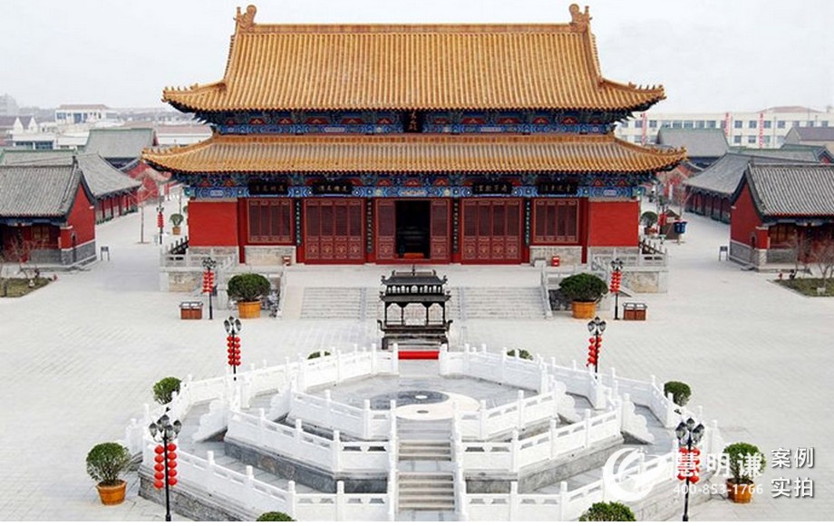 明道宮位于老子故里周口市鹿邑縣城內(nèi),始建于漢代(公元743年),興盛于唐宋。中國古代偉大思想家、哲學(xué)家、道家學(xué)派創(chuàng)始人老子傳道講學(xué)的紀(jì)念性建筑群。明道宮景區(qū)是依照清光緒縣志記載,于二零零四年恢復(fù)重建的,由“伊人宛在坊”,“升仙橋”、“猶龍堤”、“迎禧殿”、“玄元殿”、“享殿”、“升仙臺”、等建筑組成,規(guī)模宏大,構(gòu)筑嚴(yán)謹。