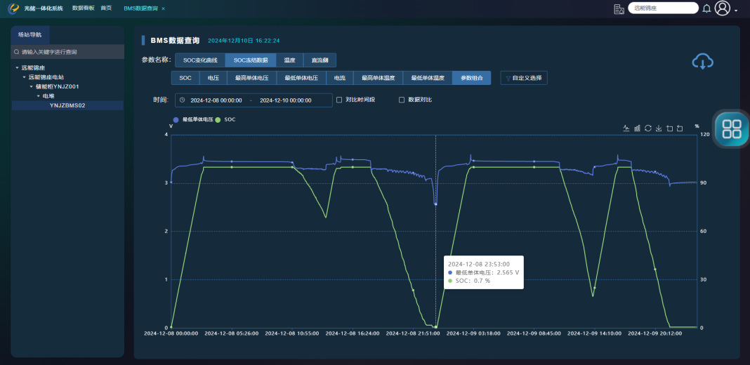 柔性充放電控制算法:針對儲能柜電芯單體電壓與SOC情況,主動控制脈沖式充放電,精準(zhǔn)柔性控制SOC充電到100%時單體電壓3.5V左右,放電到1%以下,單體電壓2.95-3.0V左右,做到滿充滿放,不損壞電池,提高儲能柜整體使用效率,我們的目的是能將儲能利用率提高5%,并保持電池單體電壓的一致性。