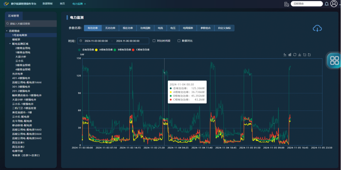 ·電力監(jiān)測:系統(tǒng)監(jiān)測電站站內(nèi)電能數(shù)據(jù),如有功功率、無功功率、視在功率、功率因素、電壓、電流、電網(wǎng)頻率曲線數(shù)據(jù)。通過實時電力監(jiān)測,可以準(zhǔn)確掌握電站的電力輸出情況,確保電力供應(yīng)的穩(wěn)定性和可靠性。