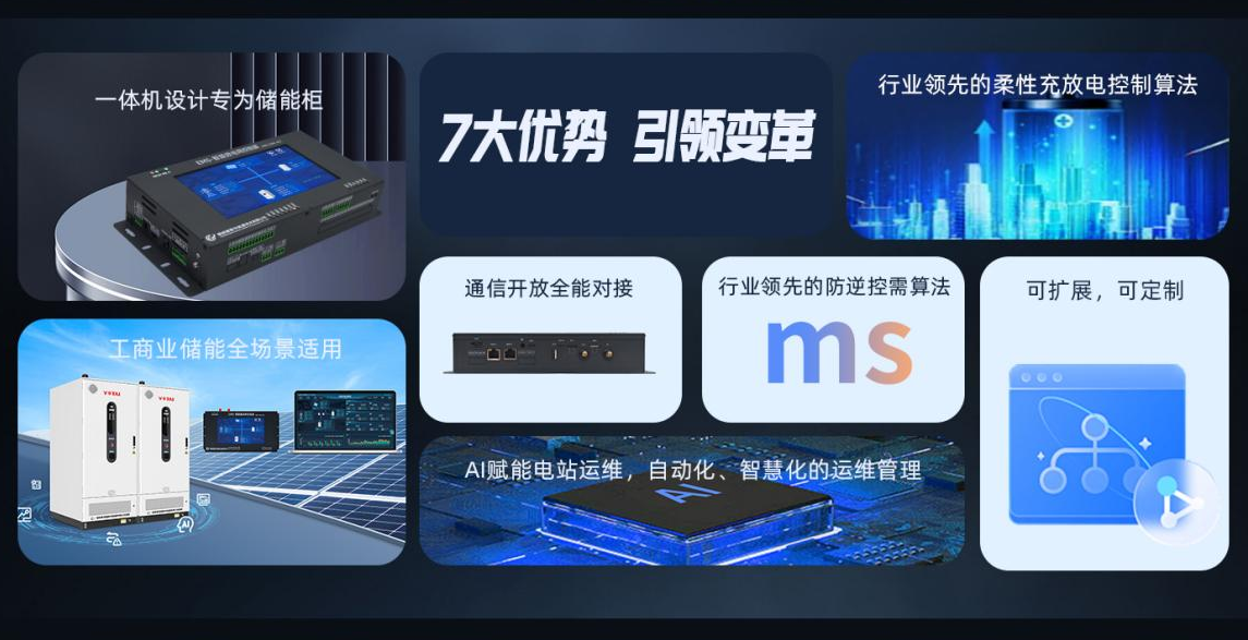 答:這主要得益于我們在技術(shù)研發(fā)上的持續(xù)投入和創(chuàng)新。我們深度耦合了能源中心數(shù)據(jù)與AI預(yù)測算法,實現(xiàn)了能量的安全優(yōu)化調(diào)度,有效解決了微電網(wǎng)調(diào)度中的多目標(biāo)優(yōu)化問題。同時,我們還配備了EMS二級主動保護(hù)系統(tǒng),能夠?qū)崟r監(jiān)控儲能柜的電芯單體電壓與溫度、高壓箱溫度、PCS溫度等關(guān)鍵指標(biāo),一旦出現(xiàn)異常,系統(tǒng)會自動處理,極大地提高了儲能柜的整體安全可靠性。此外,我們的充放電主動策略系統(tǒng)可以根據(jù)電芯單體電壓與SOC情況,主動控制脈沖式充放電,保障電芯電壓一致,精準(zhǔn)控制SOC充電到100%放電到1%以下,從而提高儲能柜的整體使用效率。慧明謙的高端EMS智能微電網(wǎng)控制器憑借其集成化的硬件與高度兼容的軟件設(shè)計,正引領(lǐng)儲能行業(yè)步入數(shù)智化發(fā)展的新階段,這意味著,制造儲能柜時,我們采用統(tǒng)一標(biāo)準(zhǔn)柜型,無需區(qū)分不同功能類型可任意配置,配合我們的6大模式:單柜、主從(多柜)、并聯(lián)集控主機(jī)、并聯(lián)集控站機(jī)、EMS雙網(wǎng)主備方案(大儲)、EMS主從方案(大儲)和我們的生產(chǎn)自動檢測系統(tǒng),從而顯著降低成本。這種標(biāo)準(zhǔn)化、自動化簡化了從生產(chǎn)、測試、倉儲到運輸?shù)娜^程,減少了因柜型錯誤帶來的管理流程成本,從而大大提高了各個環(huán)節(jié)的效率。每個標(biāo)準(zhǔn)儲能柜可靈活充當(dāng)主柜、從柜、并聯(lián)集控主機(jī)或并聯(lián)集控站機(jī)等,簡化現(xiàn)場配置,適應(yīng)未來儲能電站各種變更的需求。這些高端技術(shù)的應(yīng)用,讓我們的產(chǎn)品在性能上遙遙領(lǐng)先。