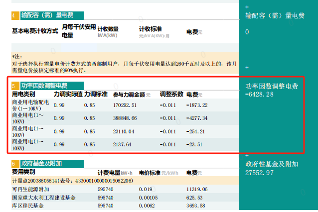 供電部門給用戶供了1度電,用戶因為用電設(shè)備等問題,功率因數(shù)為0.7,即只產(chǎn)生了0.7度有功電量,另外的0.3度電是無功功率產(chǎn)生的損耗,供電部門為了減少損耗、改善電網(wǎng)供電質(zhì)量,會對用戶的功率因數(shù)進行考核,即力調(diào)(tiáo)電費,我們看這個工商業(yè)電費單,用戶實際的功率因素高于考核標準,電費獎勵了六千多