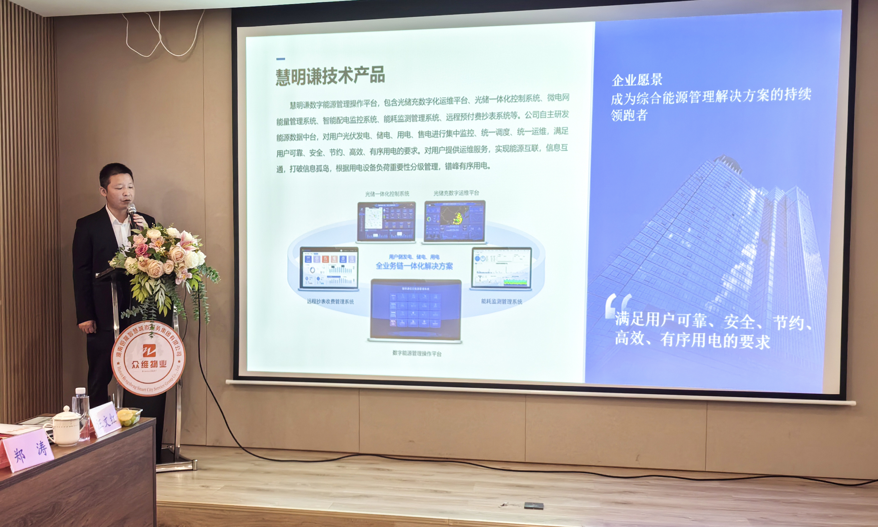針對(duì)各單位負(fù)責(zé)人提出的痛點(diǎn)及需求,我公司董事長汪文紅以節(jié)能降耗為主題,分享了遠(yuǎn)能電力&慧明謙數(shù)字能源解決方案,提出了將數(shù)字能源智能管理系統(tǒng)應(yīng)用與線下專業(yè)技術(shù)服務(wù)相融合,創(chuàng)新電力能源綜合管理與運(yùn)營服務(wù)產(chǎn)品,利用數(shù)字化、新能源技術(shù)創(chuàng)新能源管理服務(wù)模式,為用戶數(shù)字化管理升級(jí)與降本增效提供優(yōu)質(zhì)解決方案,通過數(shù)字化+智能化的創(chuàng)新技術(shù),聚焦用電管理、能源效率優(yōu)化、清潔能源利用三大領(lǐng)域賦能社區(qū)智慧生活,打造了源網(wǎng)荷儲(chǔ)一體化管理平臺(tái),數(shù)字能源管理操作平臺(tái)集成了遠(yuǎn)程預(yù)付費(fèi)系統(tǒng)、能耗管理系統(tǒng)、智能配電監(jiān)控系統(tǒng)、微電網(wǎng)能量管理系統(tǒng)、光儲(chǔ)一體化控制系統(tǒng)等五大系統(tǒng),致力于為物業(yè)能源管理效益最大化賦能。隨后在遠(yuǎn)能電力&慧明謙數(shù)字能源演示大廳與各物業(yè)單位負(fù)責(zé)人進(jìn)行了深入的現(xiàn)場(chǎng)交流和平臺(tái)數(shù)據(jù)演示。