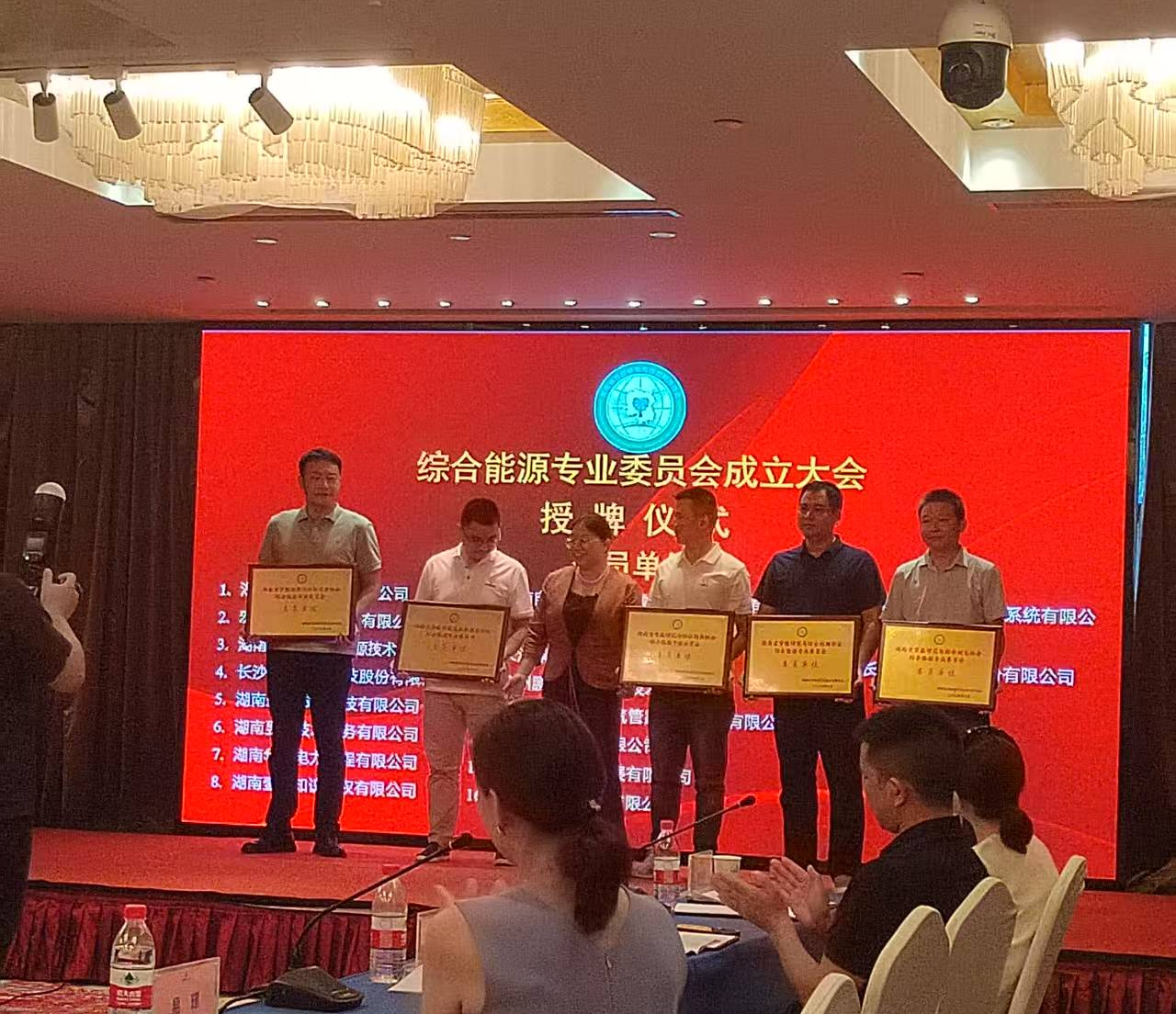 授牌儀式——協(xié)會理事長廖勝明親手將“綜合能源專業(yè)委員會成員單位”牌匾授予慧明謙董事長。