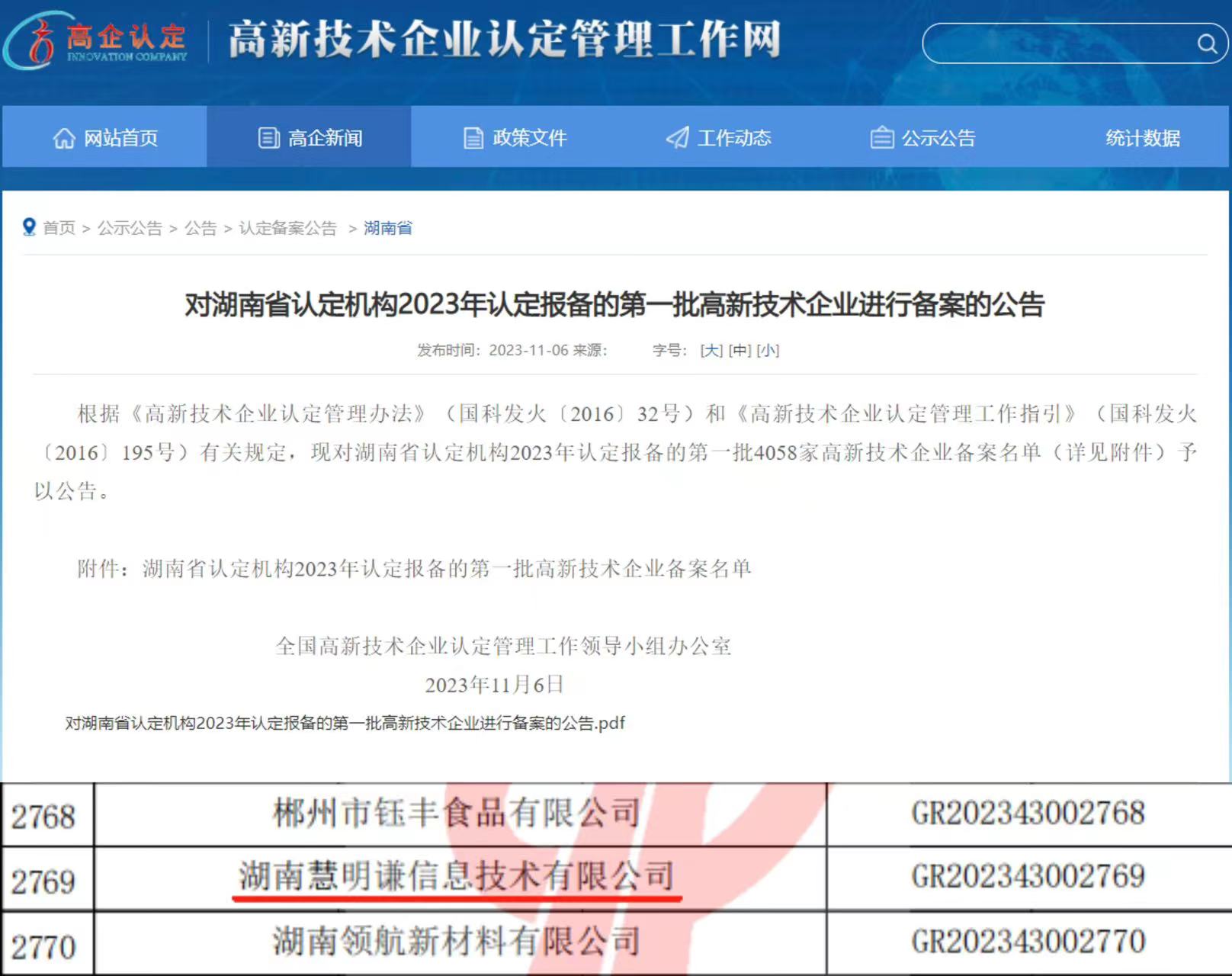 對(duì)湖南省認(rèn)定機(jī)構(gòu)2023年認(rèn)定報(bào)備的第一批高新技術(shù)企業(yè)進(jìn)行備案的公告_湖南省_高新技術(shù)企業(yè)認(rèn)定工作網(wǎng)