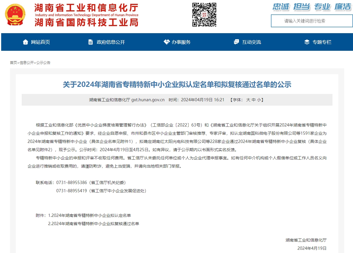 原文鏈接:關(guān)于公布2024年湖南省專精特新中小企業(yè)認定和復(fù)核名單的通知