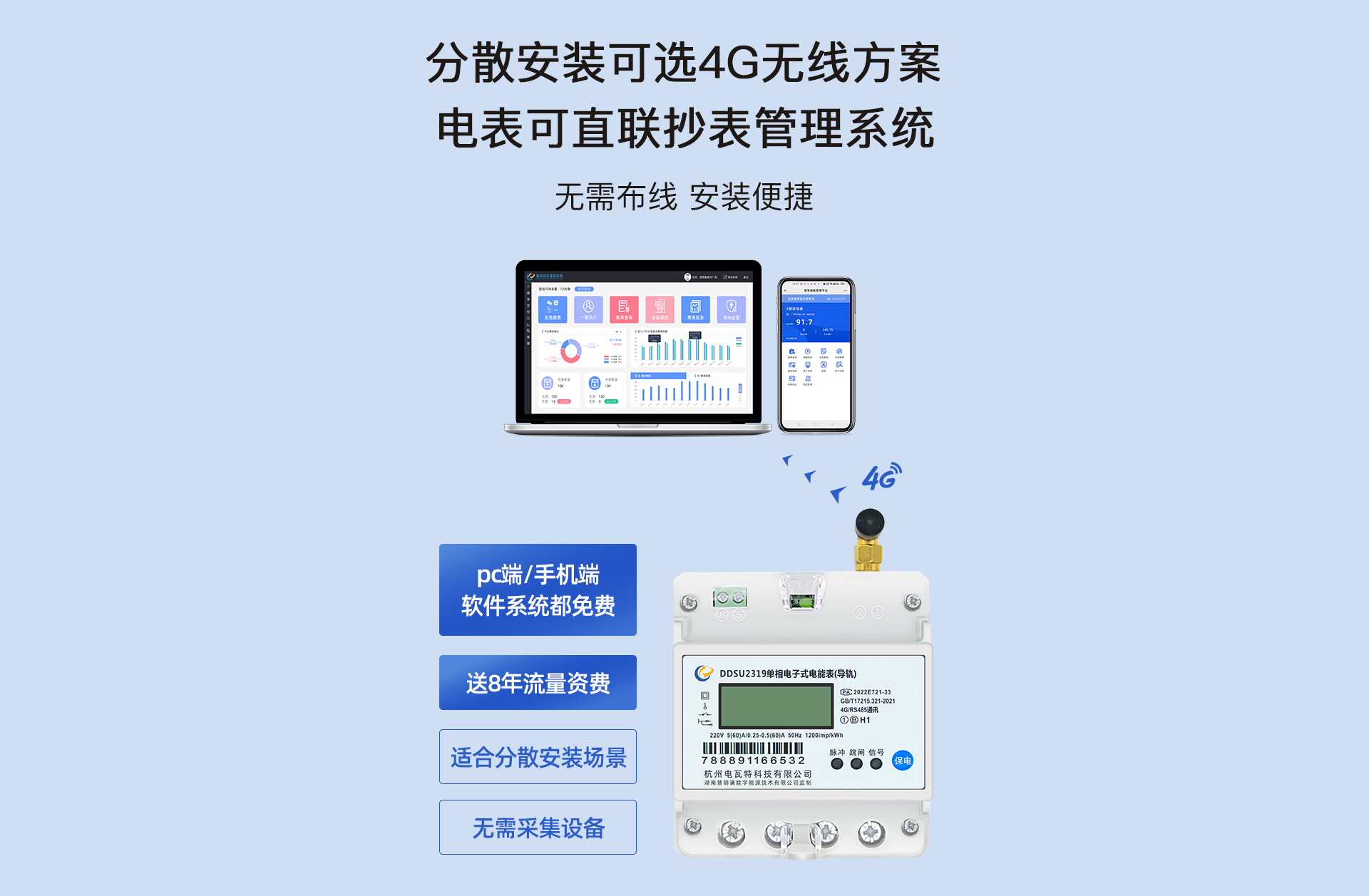 電瓦特DDSU2319單相4G通訊電子式導(dǎo)軌表