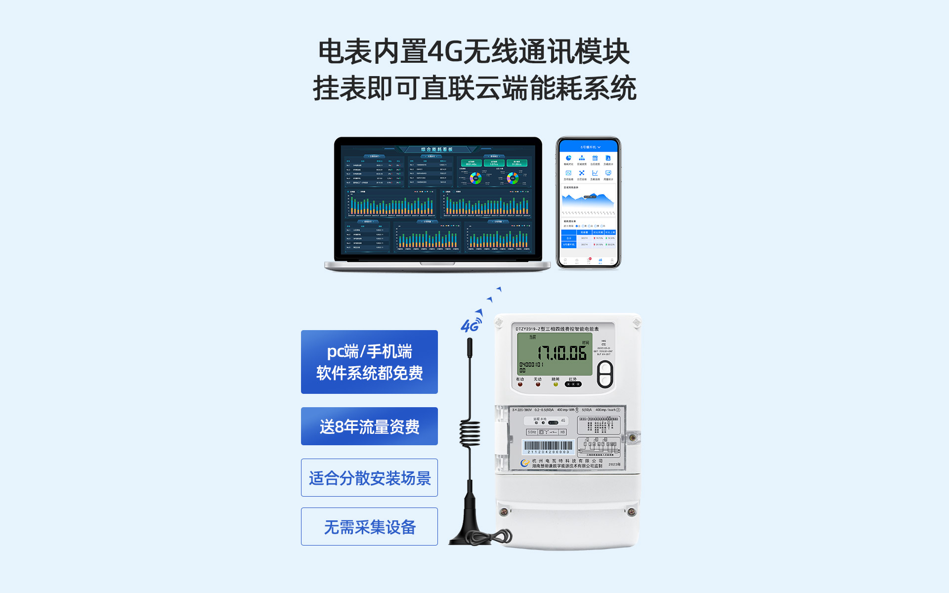 電瓦特DTZY2319-Z型4G通訊智能電能表