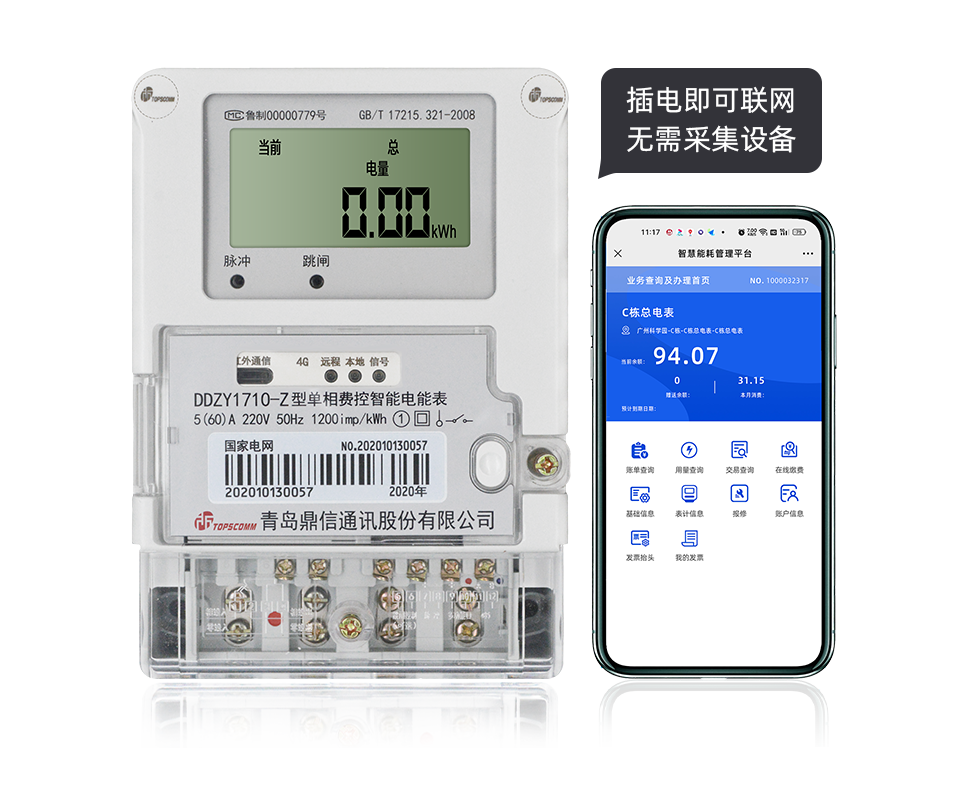 贈送遠程抄表系統(tǒng)+業(yè)主繳費APP電表內置4G采集模塊