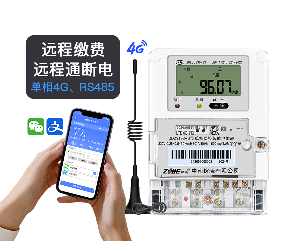中南儀表DDZY193-J型4G/RS485通訊單相智能電能表