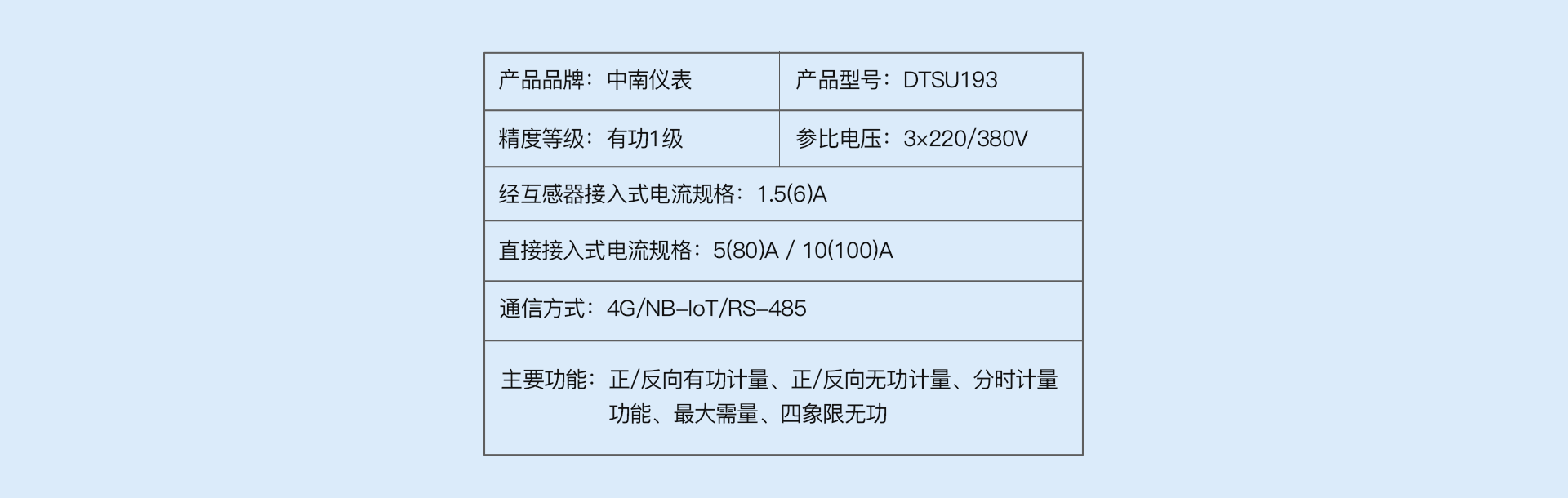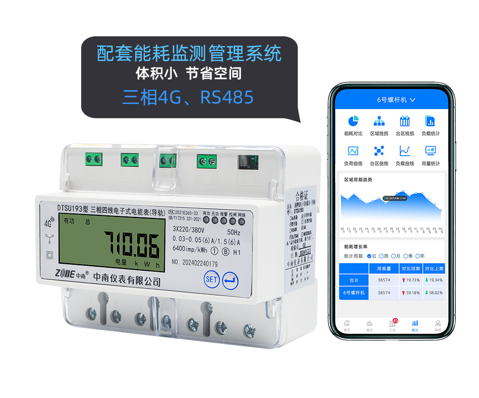中南儀表DTSU193三相四線4G/RS485通訊電子式導(dǎo)軌表